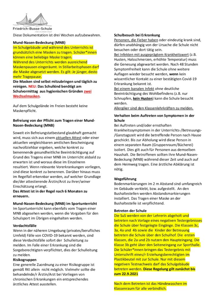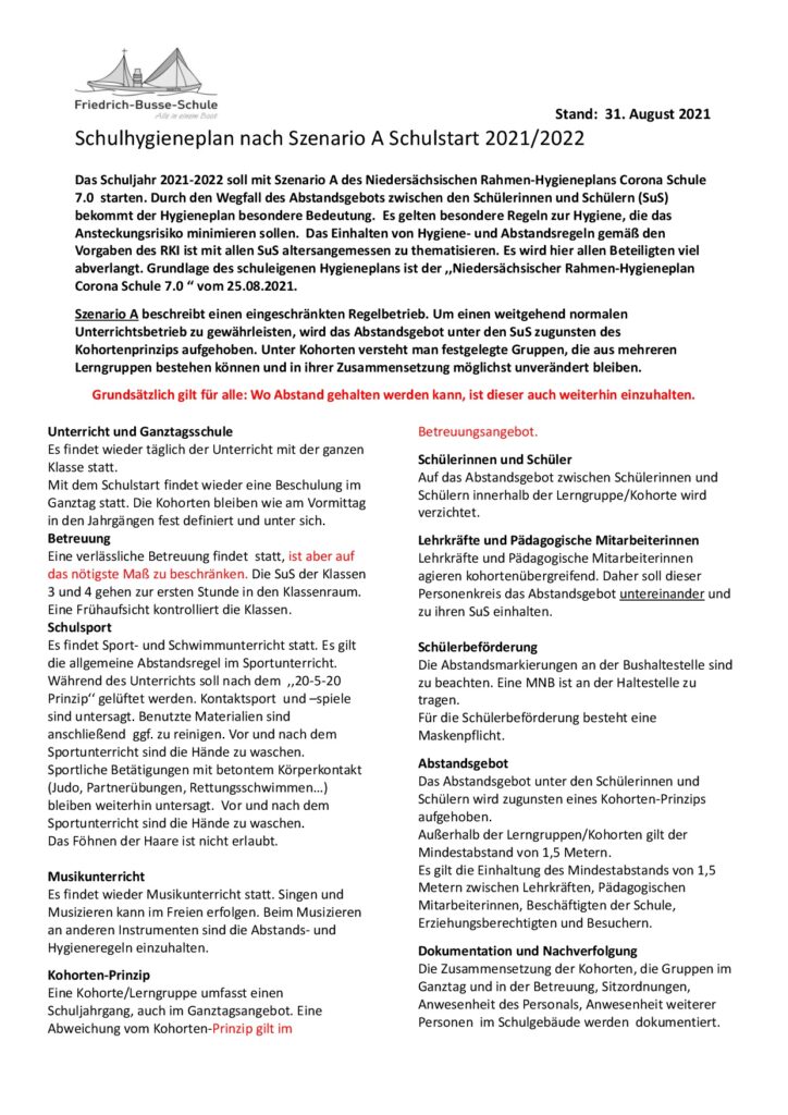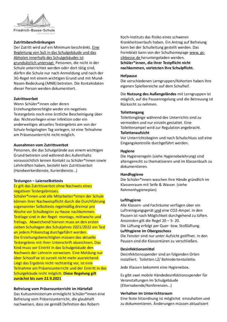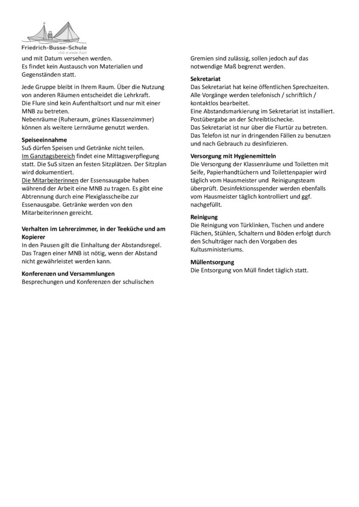 aktualisierter Hygieneplan