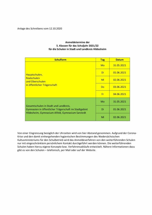 Anmeldetermine weiterführende Schulen