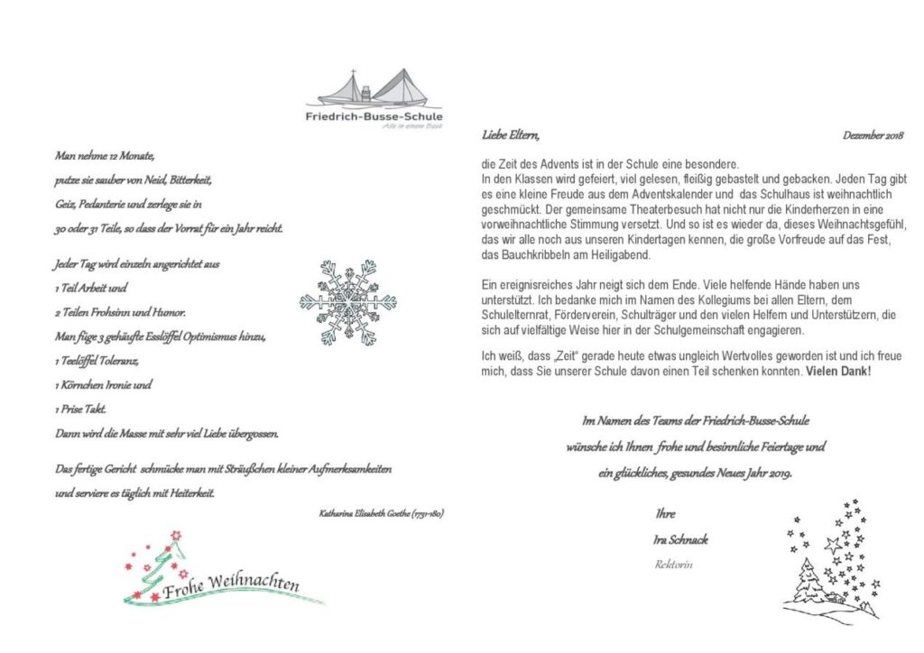 Weihnachtsbrief 2018