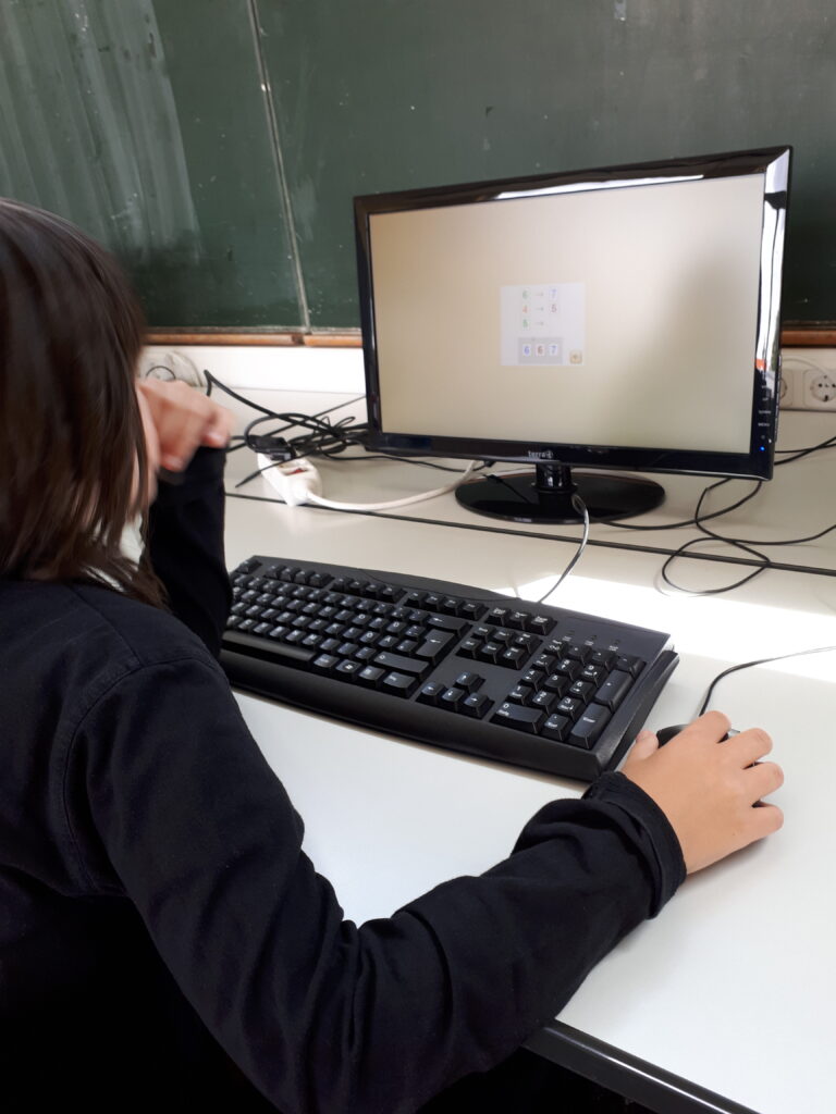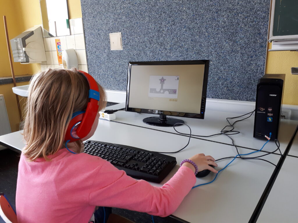 Am Freitag in der letzten Stunde der Woche findet die PC-Logikspiele-AG statt. Dort beginnen wir immer erst einmal mit einem Maustraining. Dann kommt das „Gehirn-Jogging“, welches manchmal ganz schön schwer ist. Am Ende dürfen wir uns ein Logikspiel aussuchen. Die meisten spielen am liebsten Pushy .