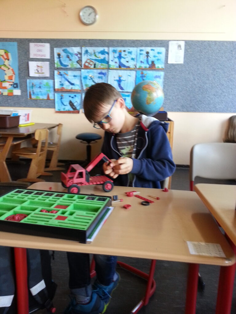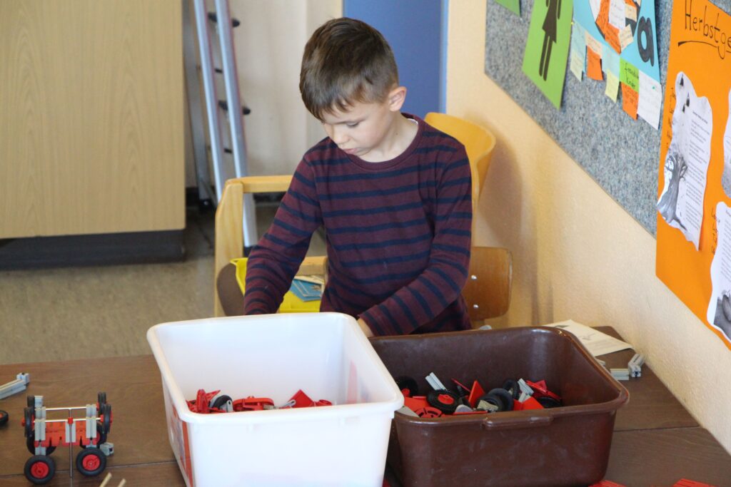 In dieser AG beschäftigen wir uns mit verschiedenen Dingen, die mit Technik funktionieren. Wir konstruieren mit Fischertechnik, bauen verschiedene Murmelbahnen oder schrauben an einfachen Stromkreisen mit Batterie. Die Funktion von technischen Alltagsgeräten wird untersucht und auch in alten Elektrogeräten lässt sich Spannendes entdecken.